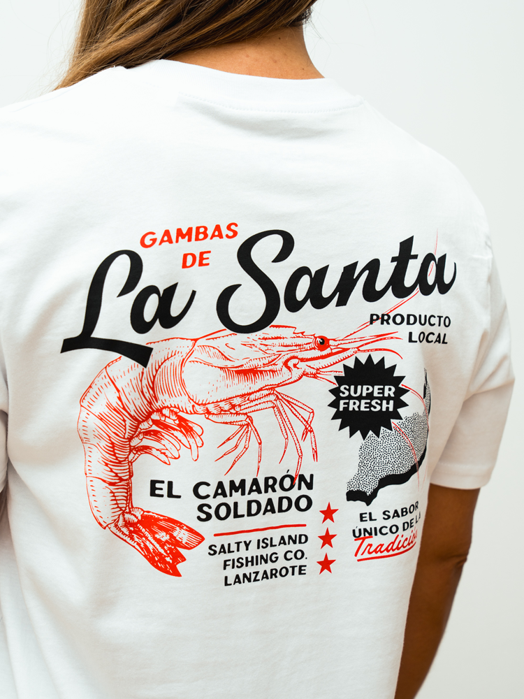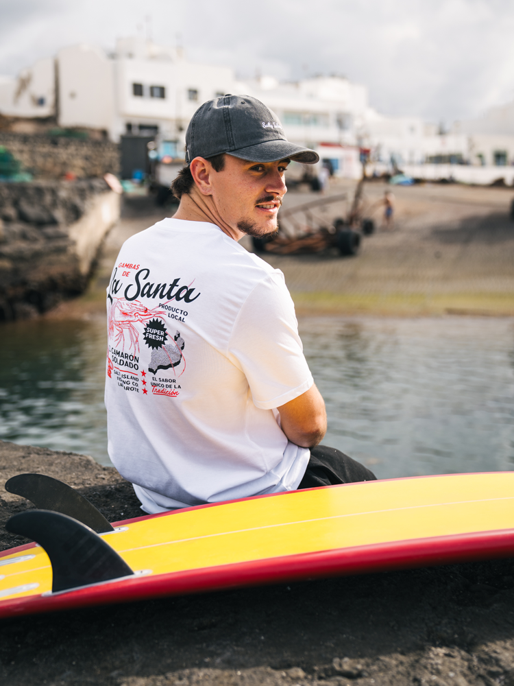 Inspirada en La Santa, el legendario paraíso del surf en Lanzarote, esta camiseta rinde homenaje a un lugar donde el viento, las olas y la libertad marcan el ritmo de la vida. Cada detalle transmite ese espíritu salado y relajado, esa actitud de quienes viven el momento y sienten el mar como parte de sí mismos.