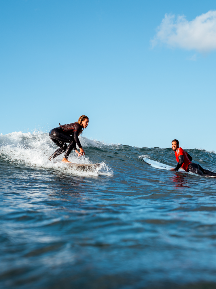 Siente lo que es estar sobre una tabla de surf, sin miedos: la adrenalina recorriendo tu cuerpo, esa risita que se escapa cuando consigues tu primera ola, la libertad y la paz mental que te da estar en contacto con la naturaleza.
